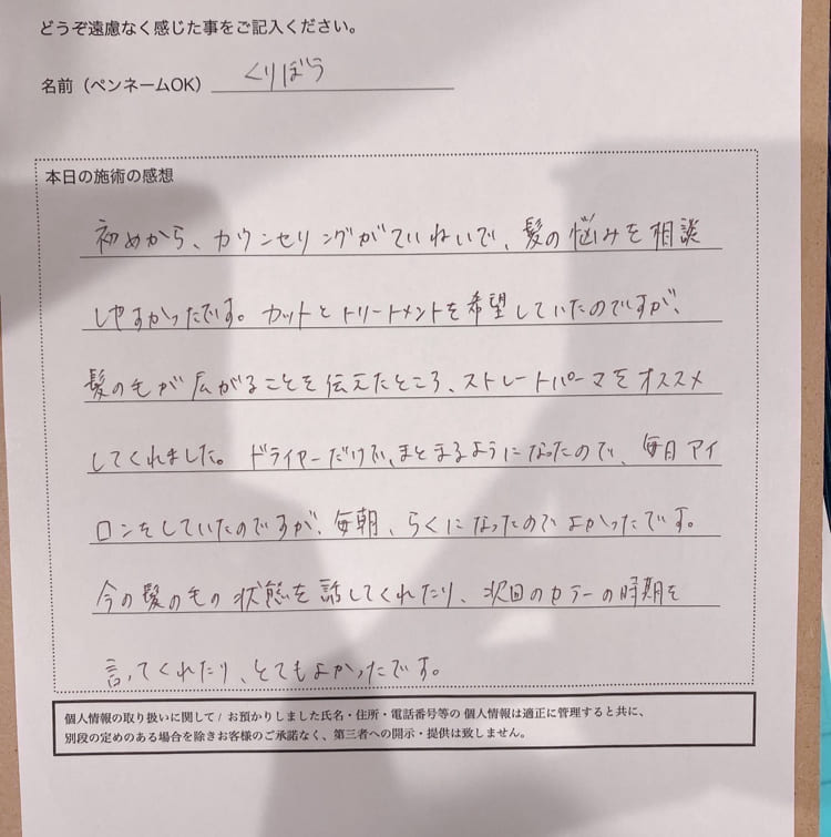 当店のトリートメントで